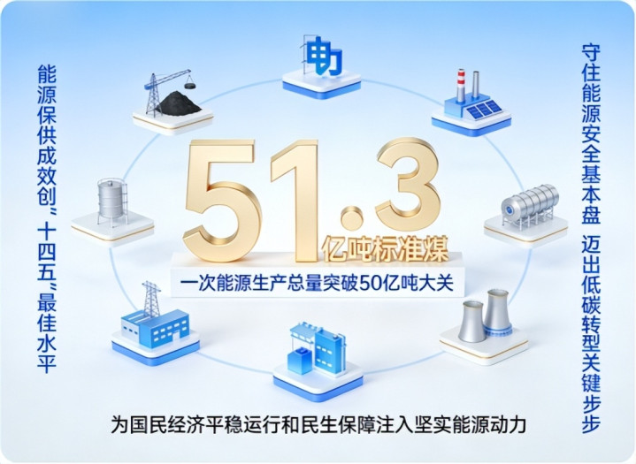 近日,国度能源局贯注发布2025年天下能源发展中枢数据,一组组亮眼数字勾画出我国能源范畴高质料发展的显著图景——这一年,我国一次能源坐褥总量顺利抵达51.3亿吨圭臬煤,历史性冲破50亿吨大关,能源保供奏效创下“十四五”以来最好水平,既守住了能源安全的“基本盘”,也迈出了低碳转型的“重要步”,为国民经济牢固驱动和民生保险注入了坚实的能源能源。