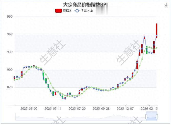 3月6日大量商品价钱指数BPI为993点,较周初上升了 39 点,较周期内最高点1343点(2021-10-19)下降了 26.06% ,较近两年最低点849点(2025-06-11)高涨了16.96% 。